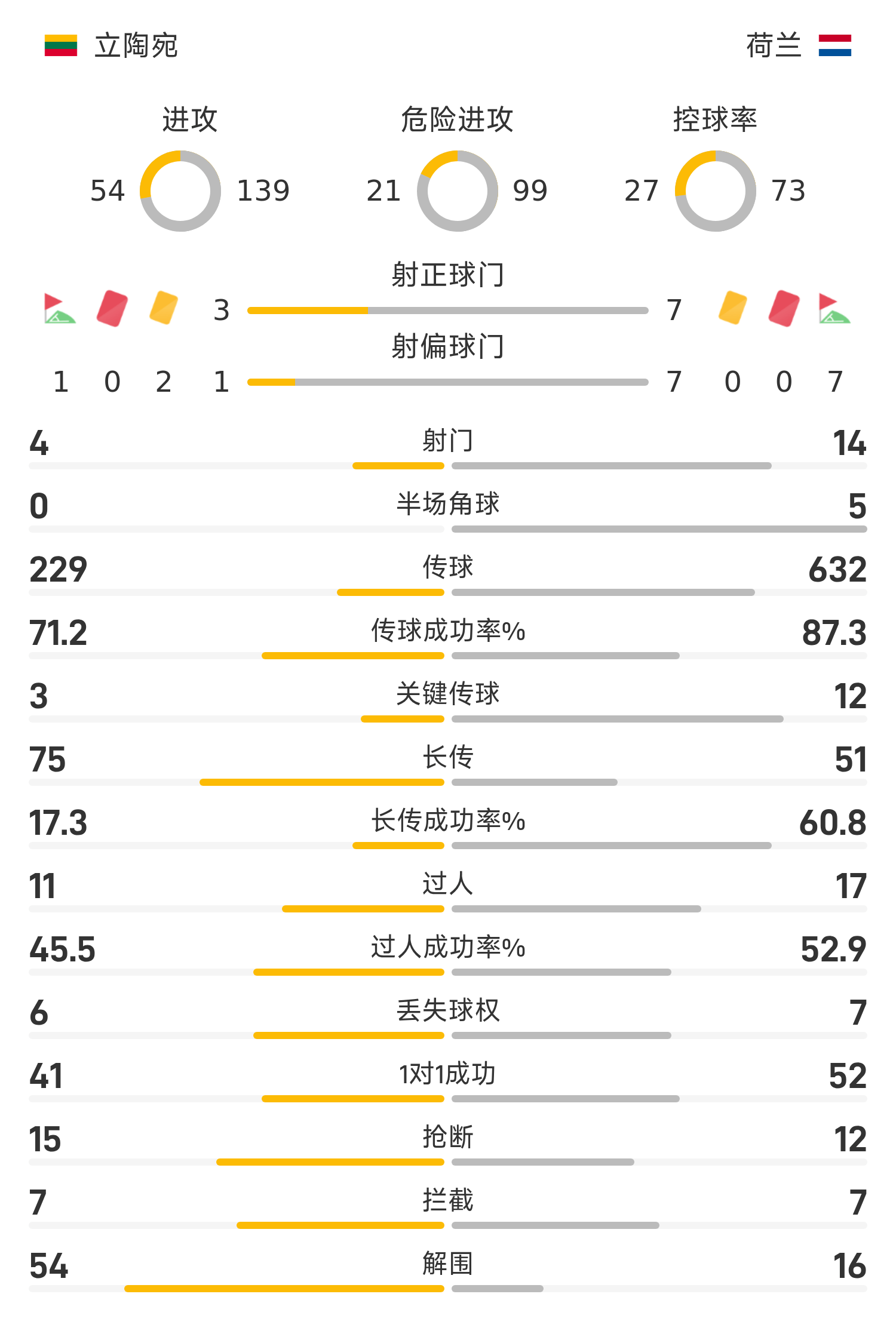 全场比赛结束,荷兰客场3-2小胜立陶宛。