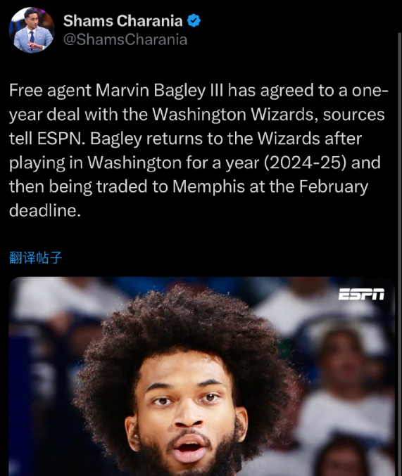 只是如今巴格利的表现持续走低,尤其是上赛季打出生涯最差赛季,成为被来回抛弃的对象,如今巴格利也是只能以1年合同重返奇才。