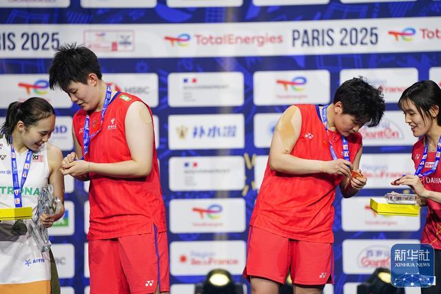 8月31日,在法国巴黎举行的2025年世界羽毛球锦标赛女子双打决赛中,中国组合刘圣书/谭宁2比1战胜马来西亚组合陈康乐/蒂娜,获得冠军。